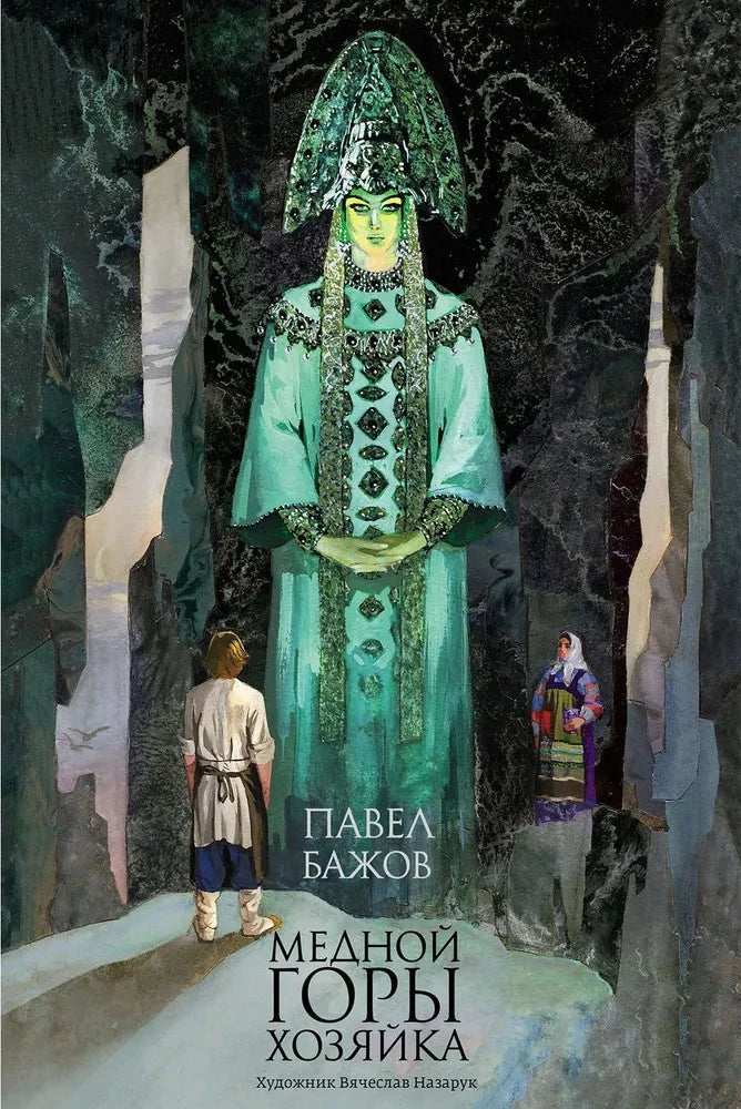 Разными чудесами славился рудник Гумёшки, на котором с XVIII века добывалась медная руда для близлежащего Полевского завода. И недаром: власть здесь принадлежала Хозяйке Медной горы. Принять она могла разный облик: то ящеркой обернётся или девушкой смешливой предстанет, то странницей в дом войдёт или властной государыней в своём царстве гостей примет. Но в любом облике Хозяйка любила «над человеком мудровать»: даст сложное задание — и приказчик работника жестоко накажет; поманит загадочным каменным цветком — и мастер навсегда в её гору уйдёт. А в горе «как комнаты большие… а стены у них разные. То всё зелёные, то жёлтые с золотыми крапинками. На которых опять цветы медные. Синие тоже есть, лазоревые. Однем словом, изукрашено, что и сказать нельзя». Вот эту красоту уральской земли, невероятное богатство уральских гор с любовью и глубоким знанием природы камня передал художник Вячеслав Назарук, несколько лет посвятивший иллюстрированию самых известных сказов Павла Бажова.